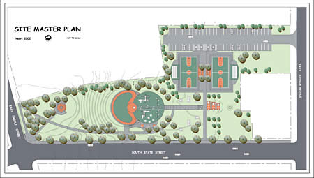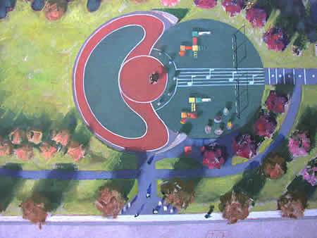 Two basketball courts located north represents the main sport facilities. Picnic Area Art Plaza The picnic area is a formal plaza where park users can shared space at the tables and enjoy near by arts expressions. Seniors Plaza The Musical Grove This is a gathering space that has a seating area for seniors as well as some symbolic elements related with Mrs. Cottons artistic life. Multipurpose Area This space provides with an opportunity for cultural performances and art expressions. Vehicular accessibility is restricted to the bandwagon and equipment supporting events, which must be located in a designated area. In addition, rolling skating is accommodated by a special color trail at the edges of the stage area. Parking Lot Reuse and rehabilitation of the 1100 block of Montgomery Street. The park benefits from parking area adjacent to the sport facilities. 30 to 40 parking slots are provided for visitors including less-able people. Project Bid and Phasing Bid documents including specifications and drawings should be ready for submission to the Purchase Department early April 2002. The project will be bid with a series of alternate items to accommodate final project budget and results of land acquisition and street abandonment now being pursued by the Law Department. Project Cost The $125,000 budget of Parks capital funds will include new playground and basic site work. Project Completion Date Sixty to ninety days after executed contract. |