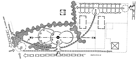 Entrances Main entrance and two secondary entrances are proposed. Vertical elements and new pavement give a new sense of entrance. Playground Provides an opportunity for tots and older youth to use play equipment in safe conditions. The tot playground has seating allowing parents to be close to children visually and spatially. |